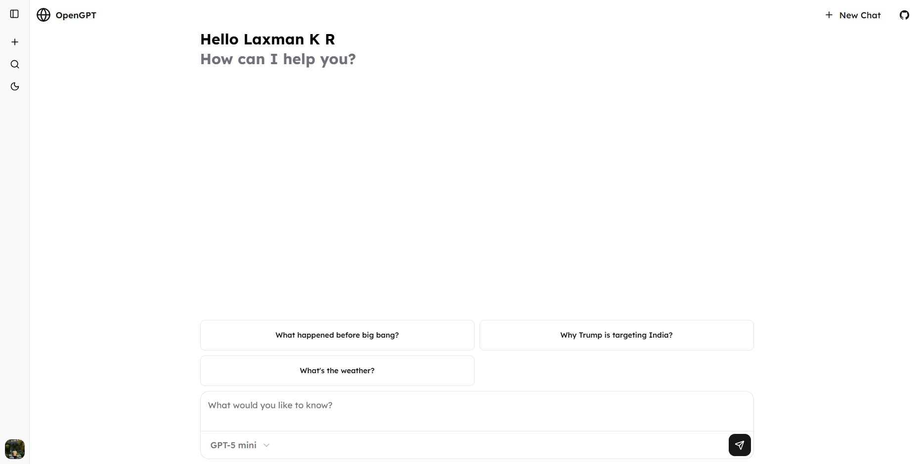 OpenGPT is a modern, responsive ChatGPT clone built for the web. It brings AI-powered conversations with advanced reasoning and tool calls while ensuring a smooth user experience through streaming and real-time updates.